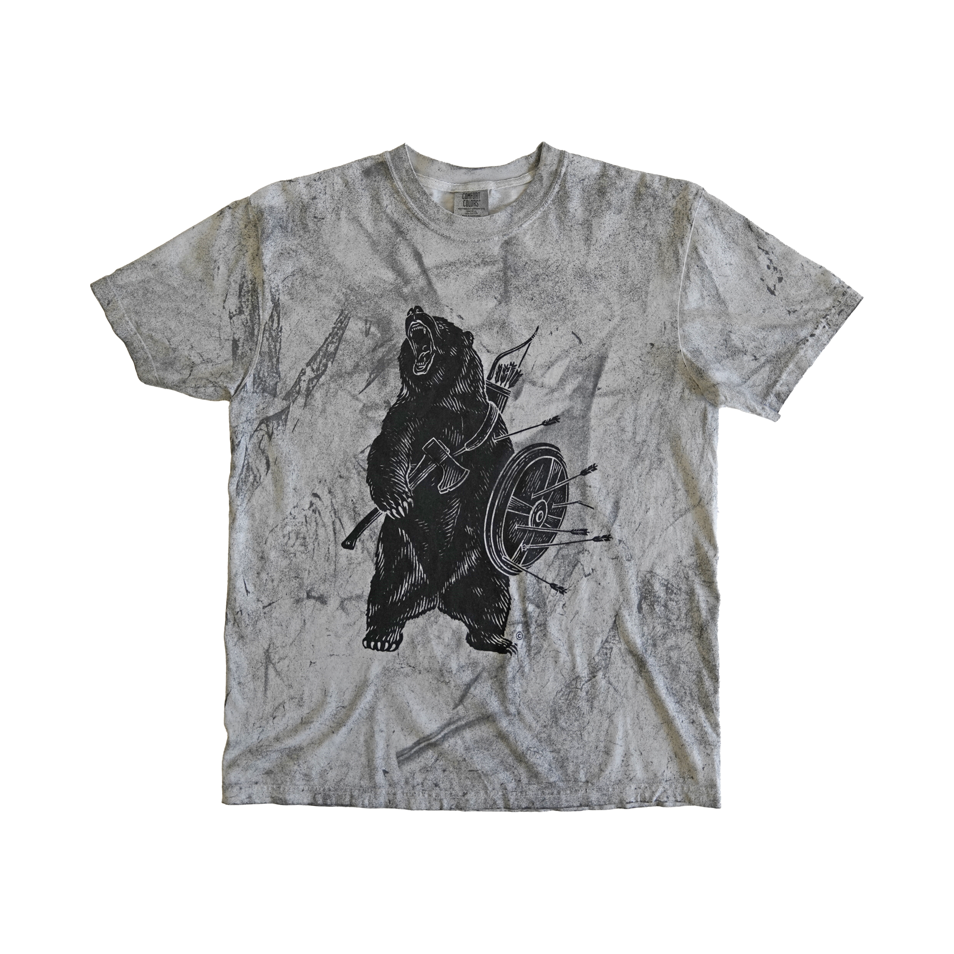 Our classic Battle Bear returns—fierce, defiant, and ready for whatever’s coming. Hand screen printed in black on a Comfort Colors Colorblast™ heavyweight tee in Smoke, this shirt has that perfectly worn-in feel right out of the box.